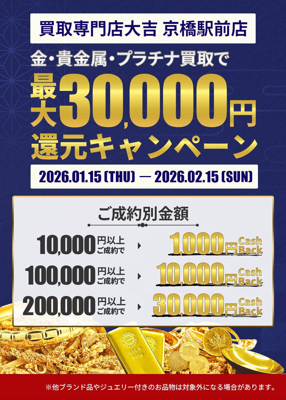 \ご好評につき再開催/【最大3万円還元】京橋で金・貴金属・プラチナを売るなら今!